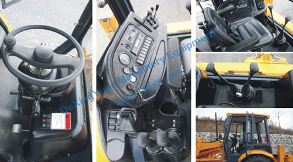 Backhoe Loader adopts four-wheel drive and full hydraulic pilot control, has characteristics of flexible operation, comfort and stable performance, widely used in road maintenance, farmland construction, soil brick kilns, pipeline laying, cable laying, landscaping and road dug and so on.